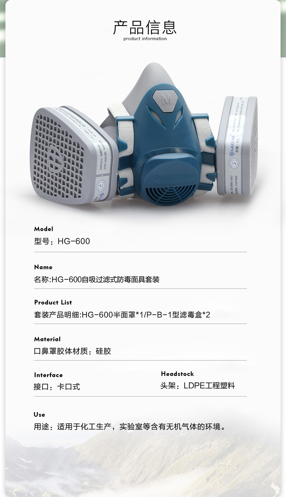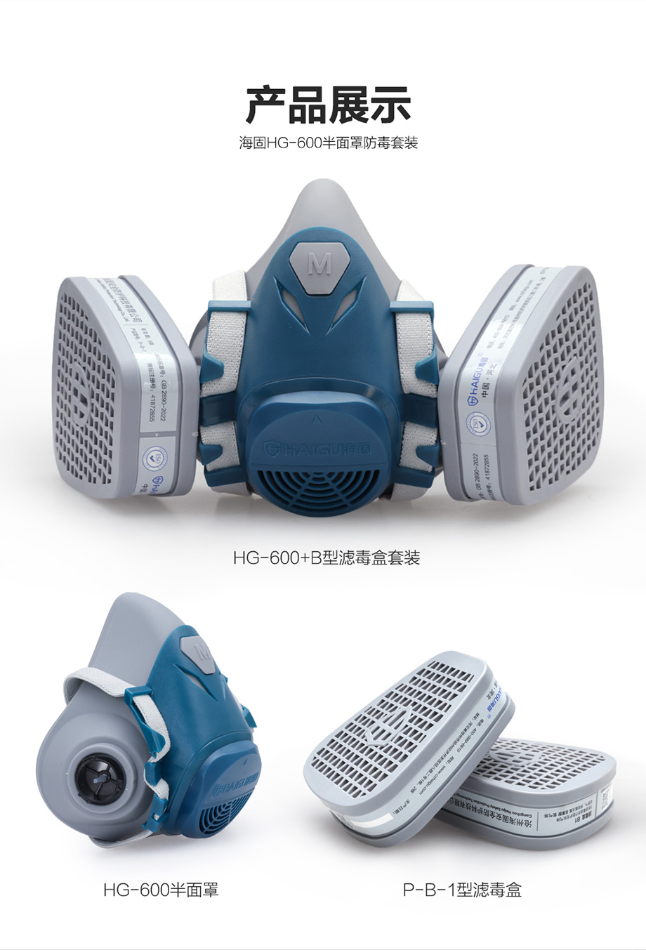 海固600半面罩+P-B-1濾毒盒 綜合防護(hù)無機(jī)氣體或蒸氣套裝