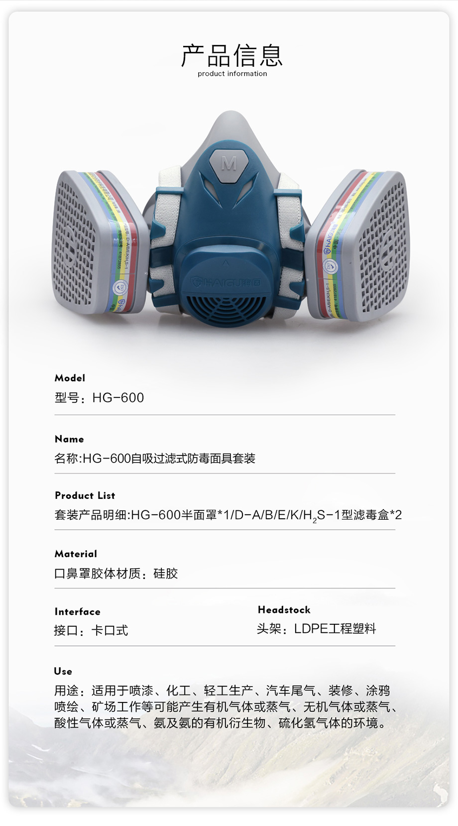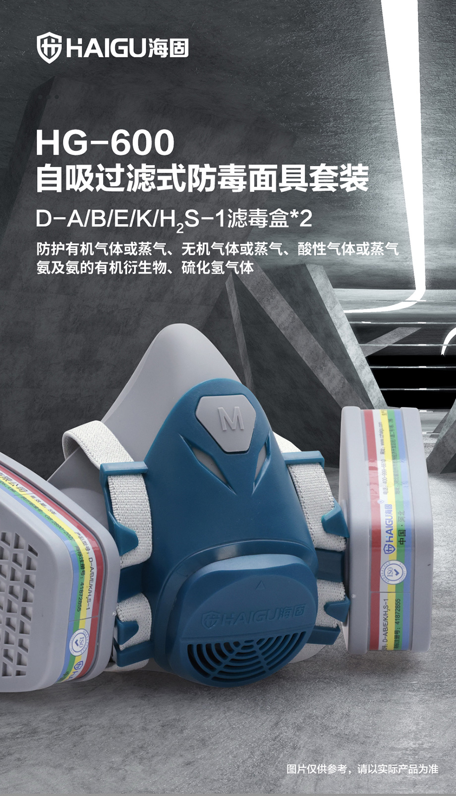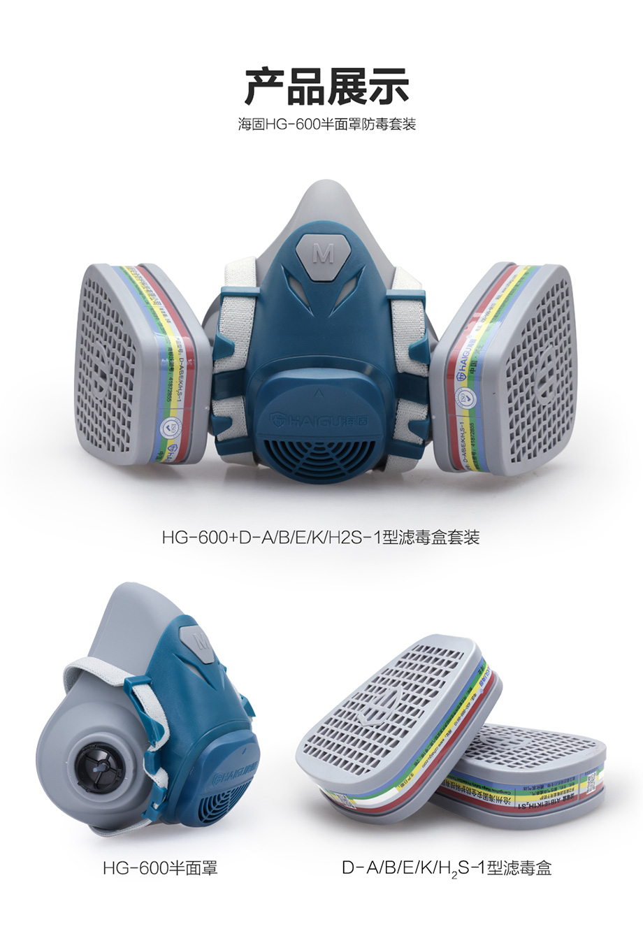 海固600半面罩+D-A/B/E/K/H2S-1濾毒盒 多功能防毒面具套裝