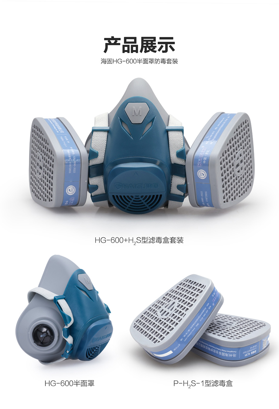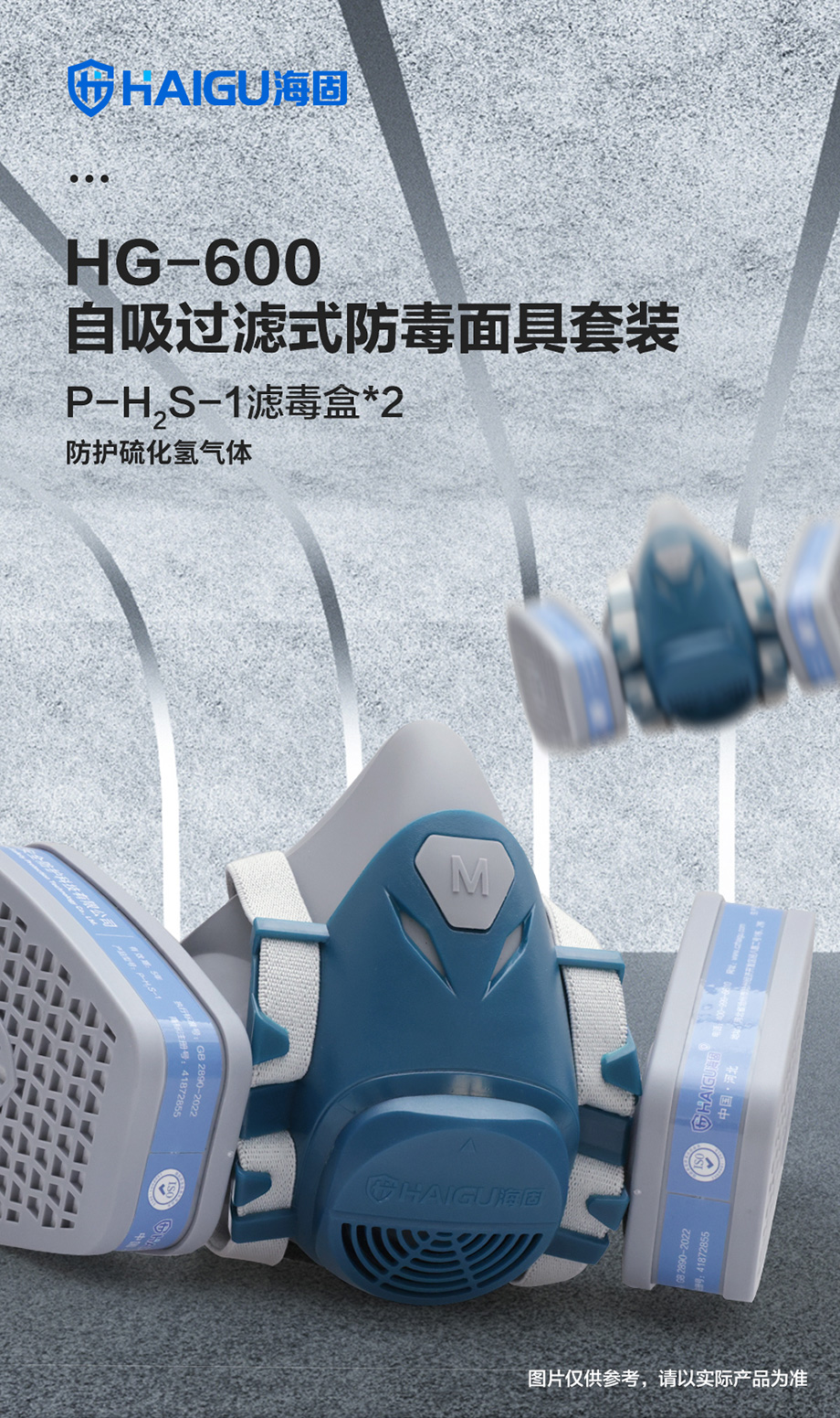 海固600半面罩+P-H2S-1濾毒盒 防護(hù)硫化氫氣體套裝