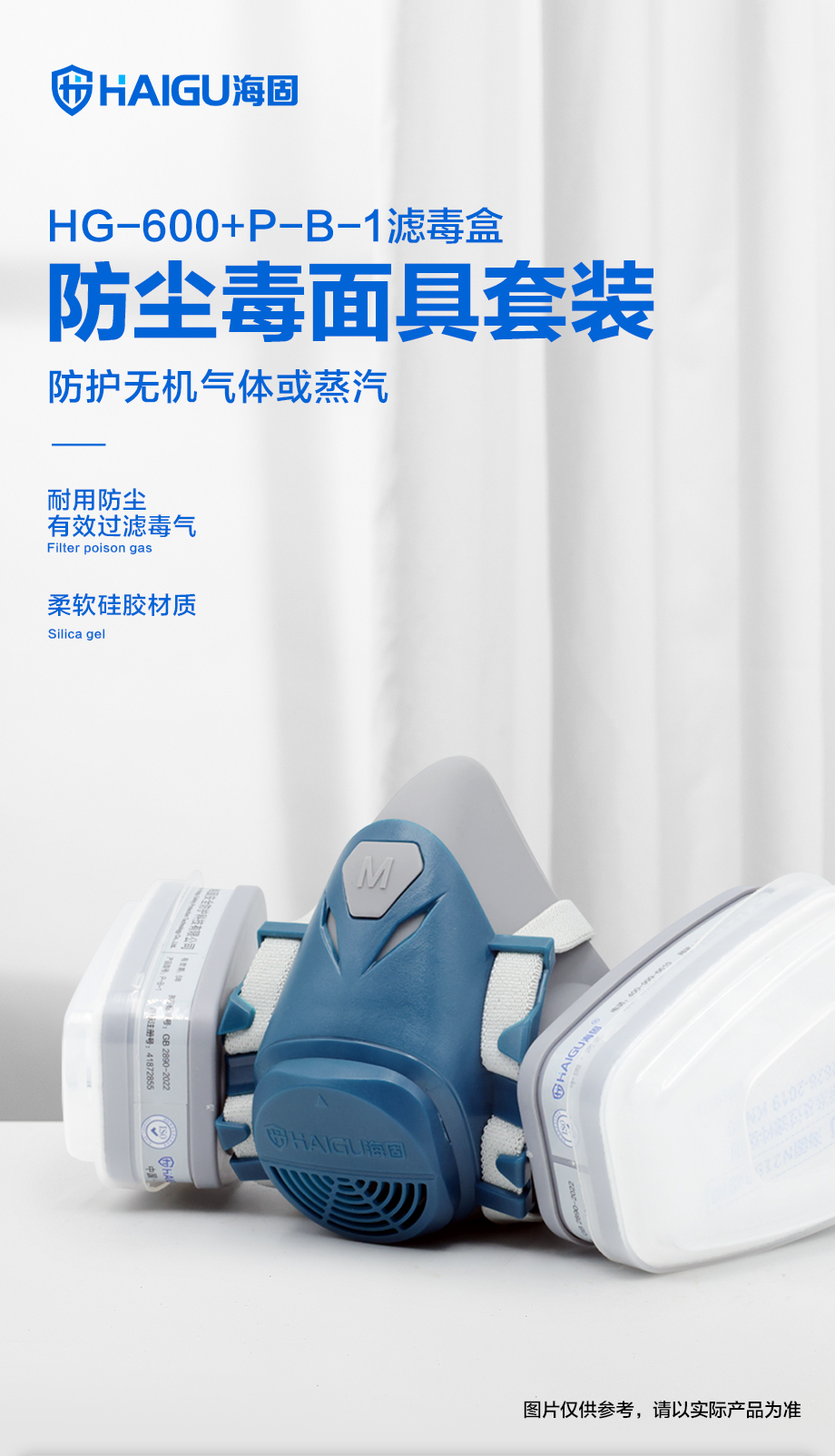 防塵毒套裝 海固600半面罩+P-B-1無機(jī)氣體濾毒盒+濾棉+濾棉蓋