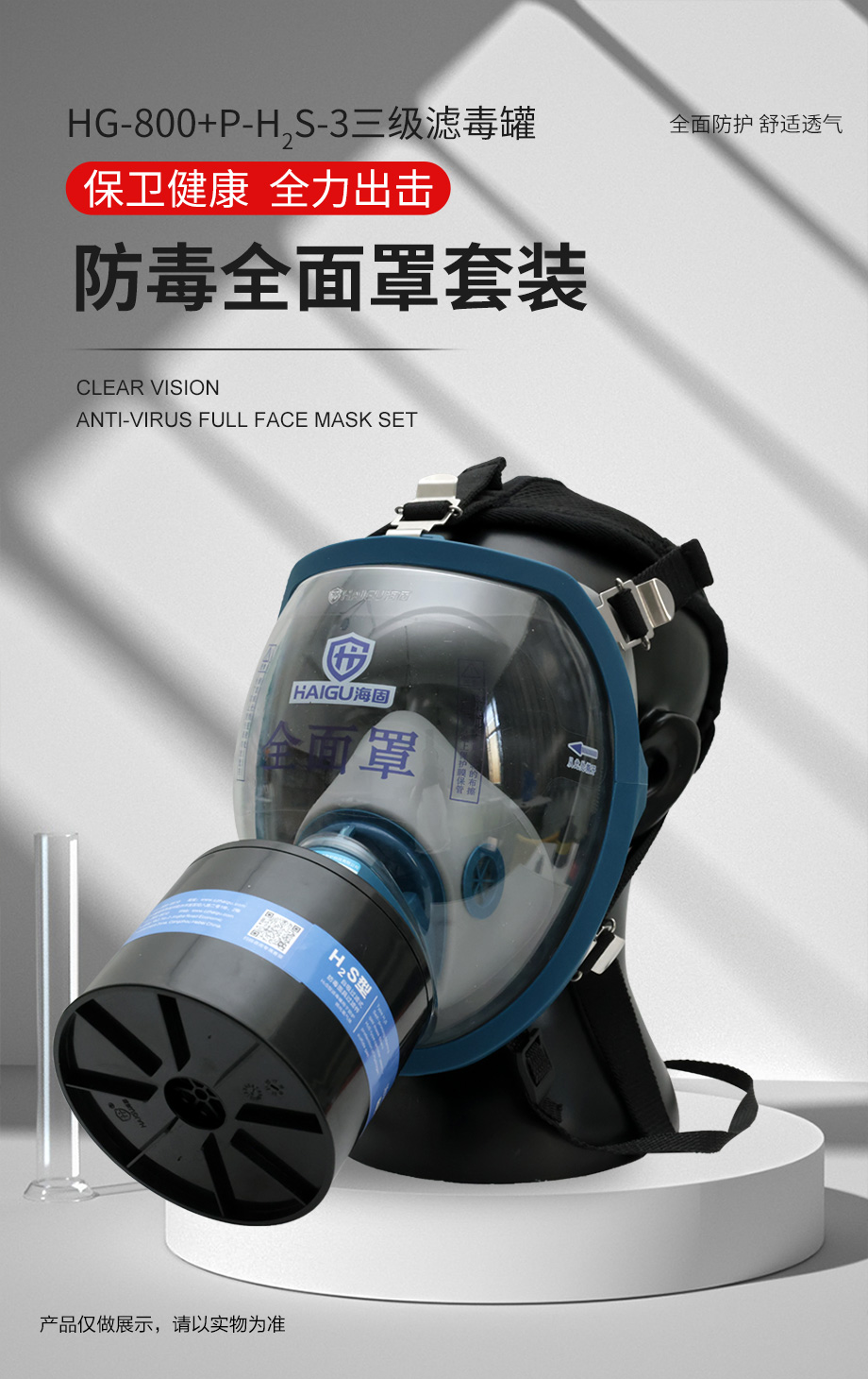 海固800全面罩+HG-ABS/P-H2S-3濾毒罐 硫化氫氣體防護套裝