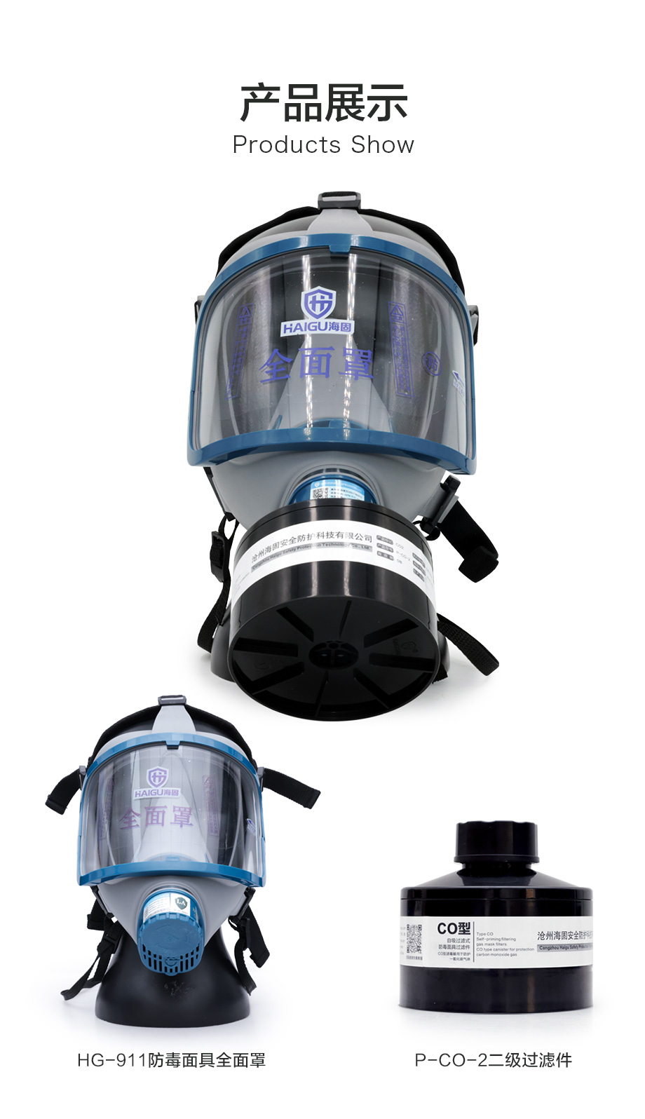 海固911全面罩+HG-ABS/P-CO-2濾毒罐 一氧化碳防毒面具
