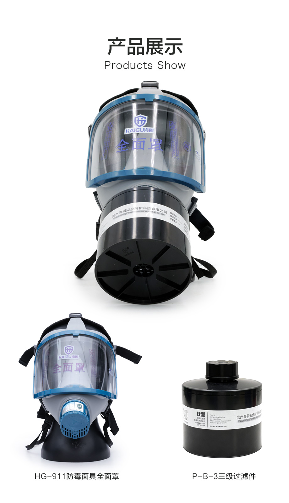 海固911全面罩+HG-ABS/P-B-3濾毒罐 防毒面具 無(wú)機(jī)氣體綜合防護(hù)