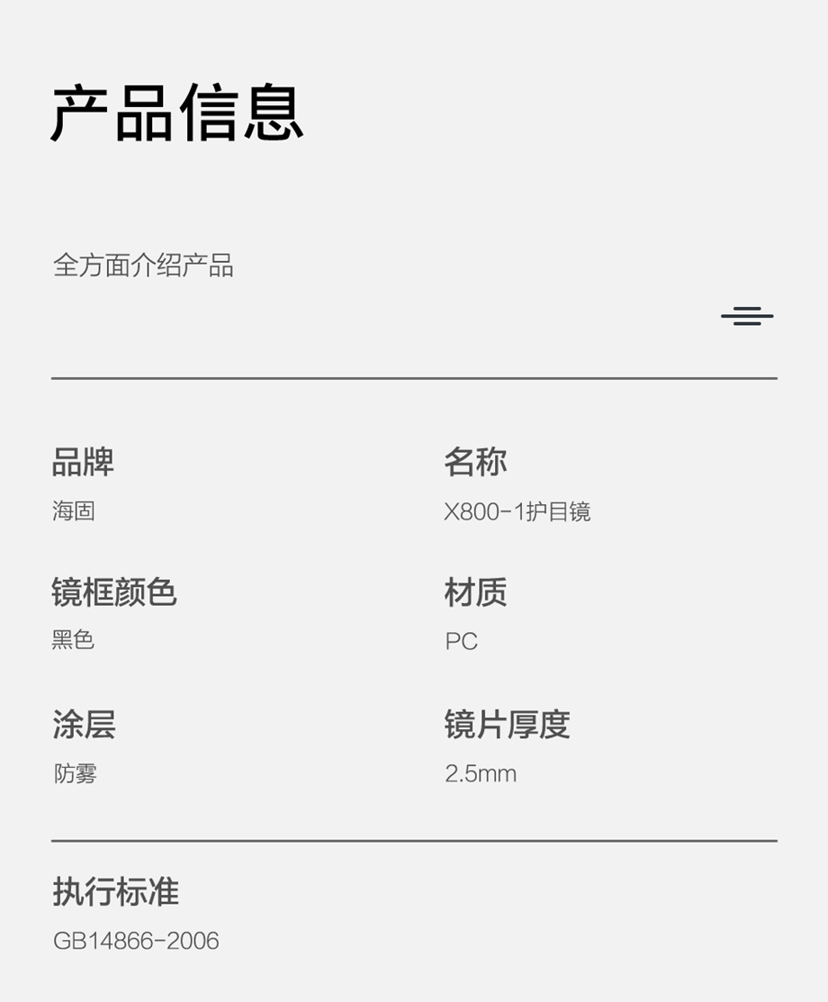 產(chǎn)品名稱:護(hù)目鏡-X800-1