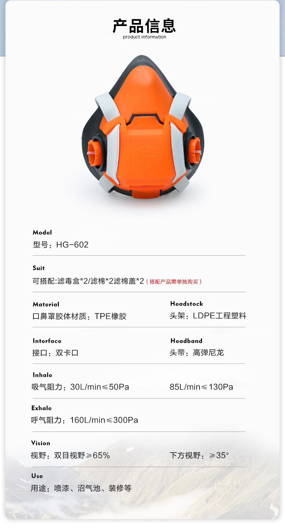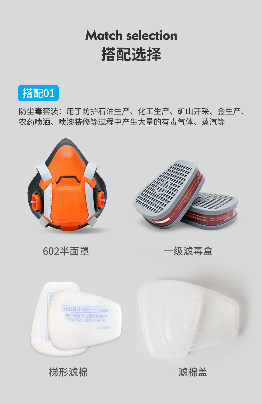 602半面罩防毒面具套裝