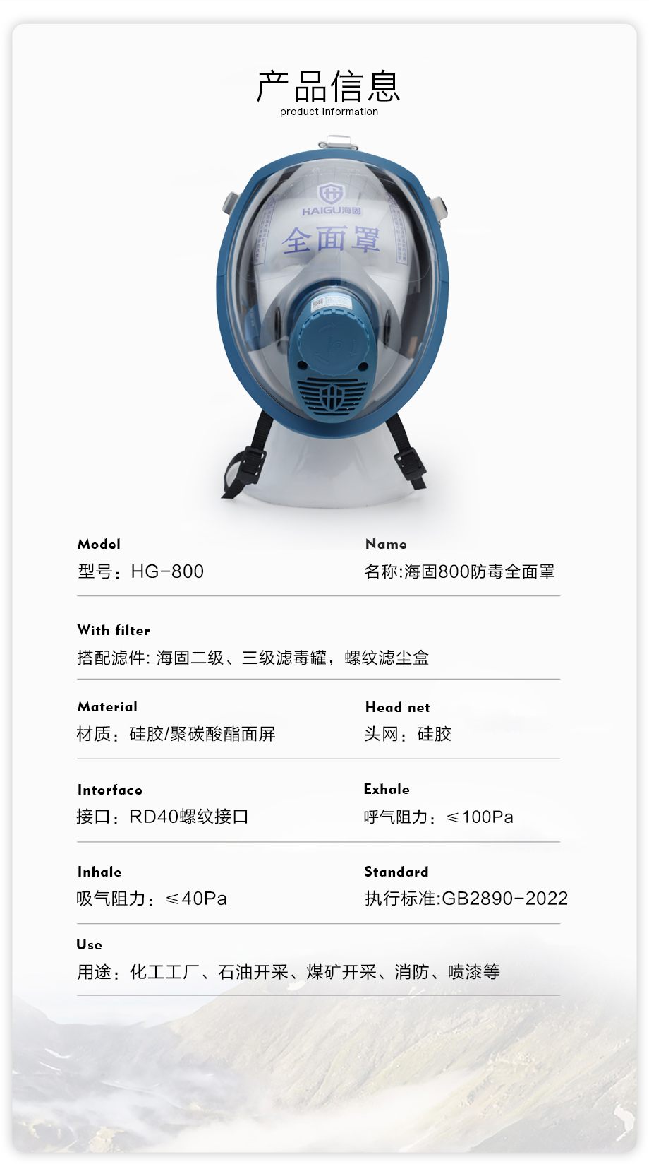 海固HG-800自吸過(guò)濾式防毒面具全面罩 硅膠頭網(wǎng)款