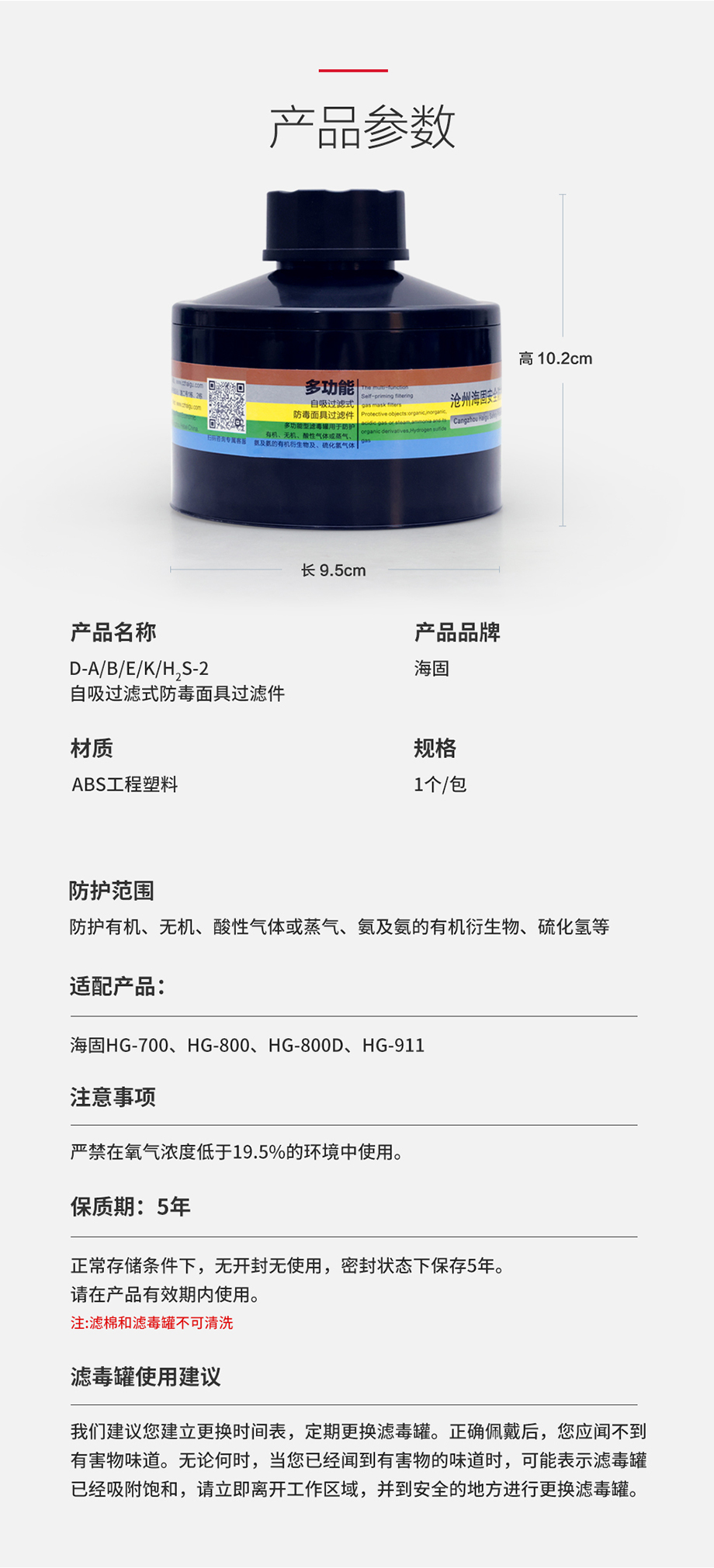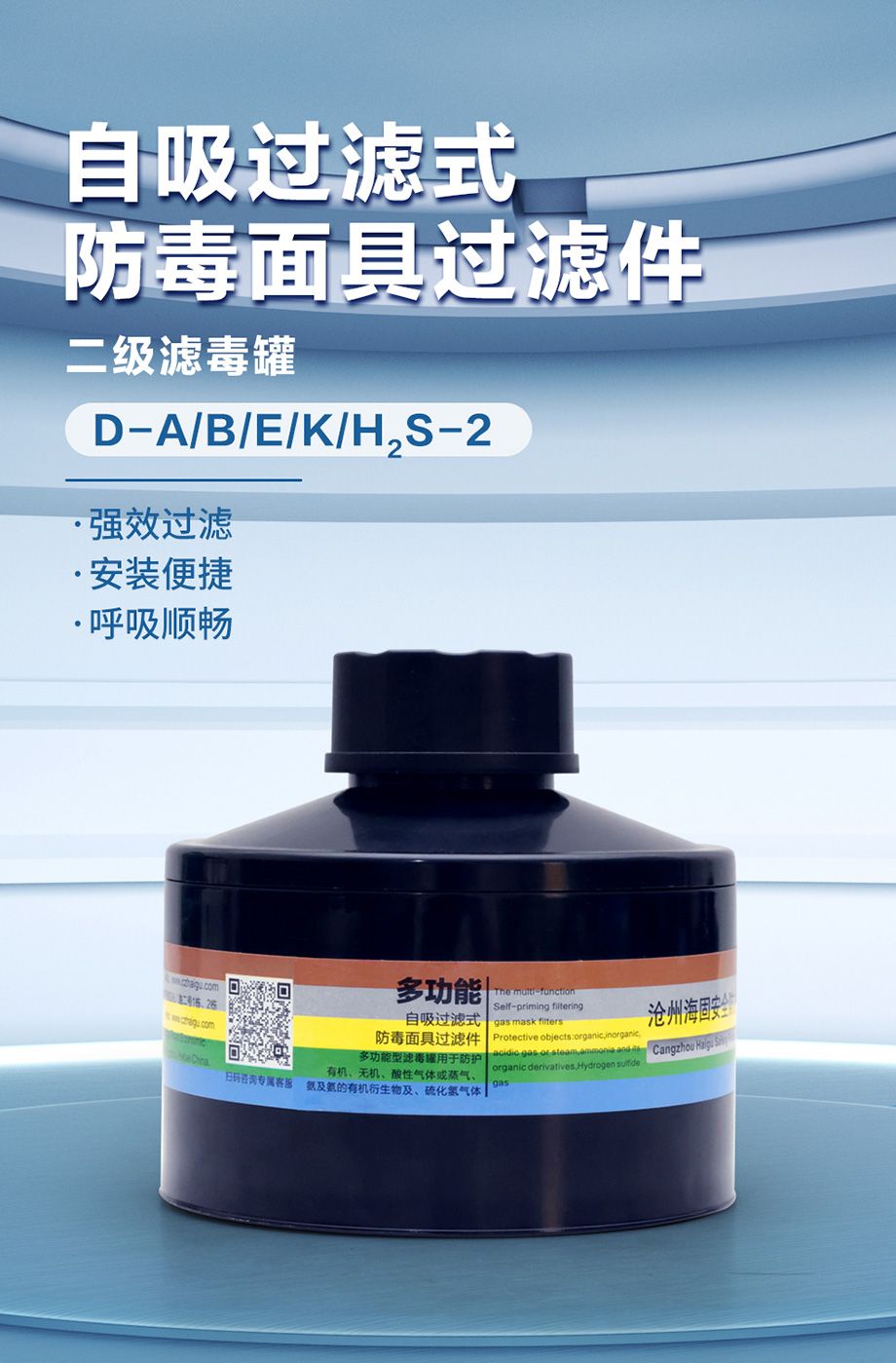 海固 D-A/B/E/K/H2S-2 D1-2濾毒罐 多功能綜合防護(hù)