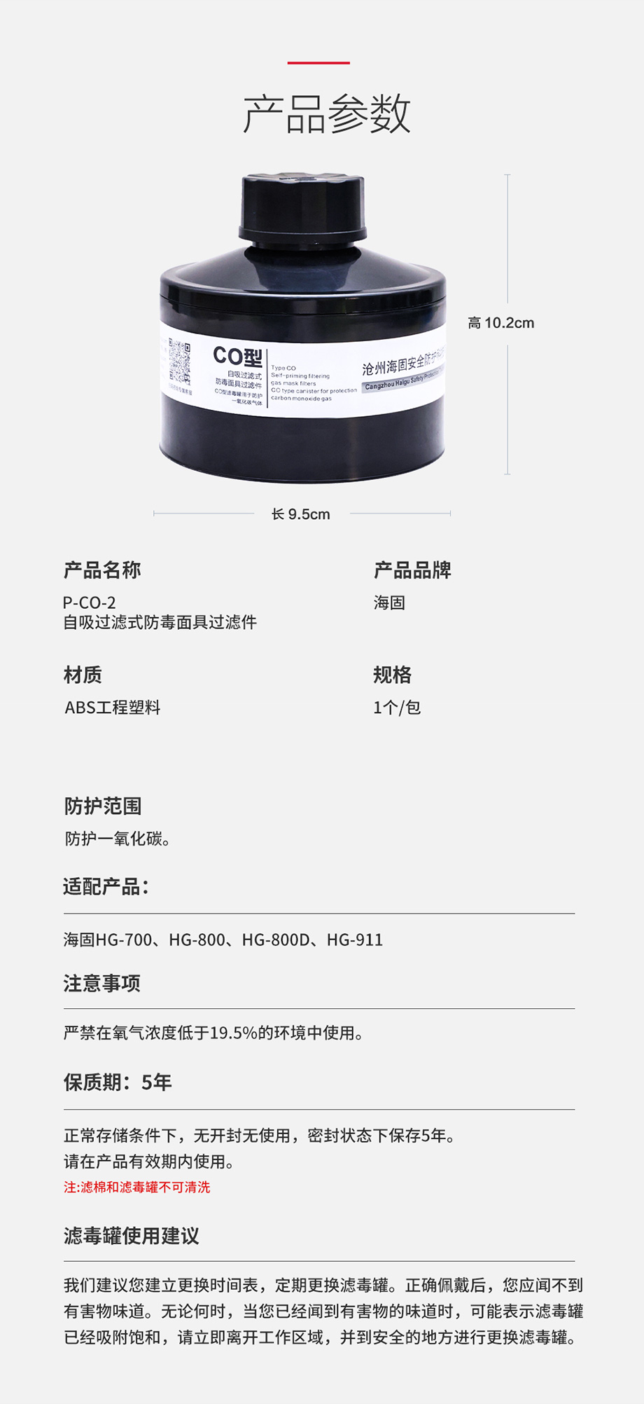 海固P-CO-2濾毒罐 一氧化碳?xì)怏w防護(hù) 5號濾毒罐