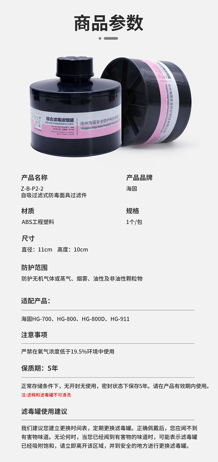 產(chǎn)品規(guī)格:綜合濾毒濾煙罐
