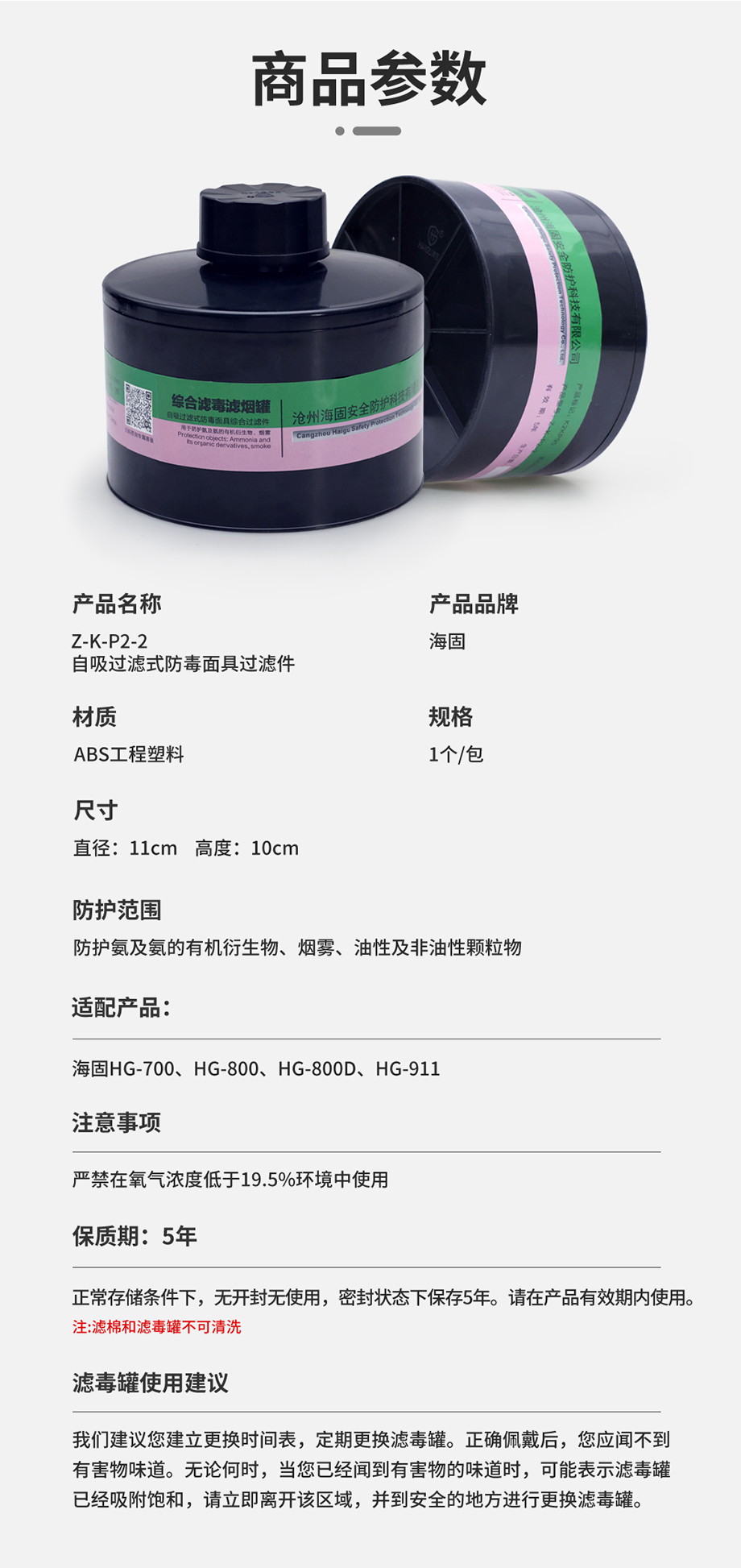 海固Z-K-P2-2/P3-2 綜合濾毒濾煙罐 防護(hù)氨及氨的有機(jī)衍生物、煙霧