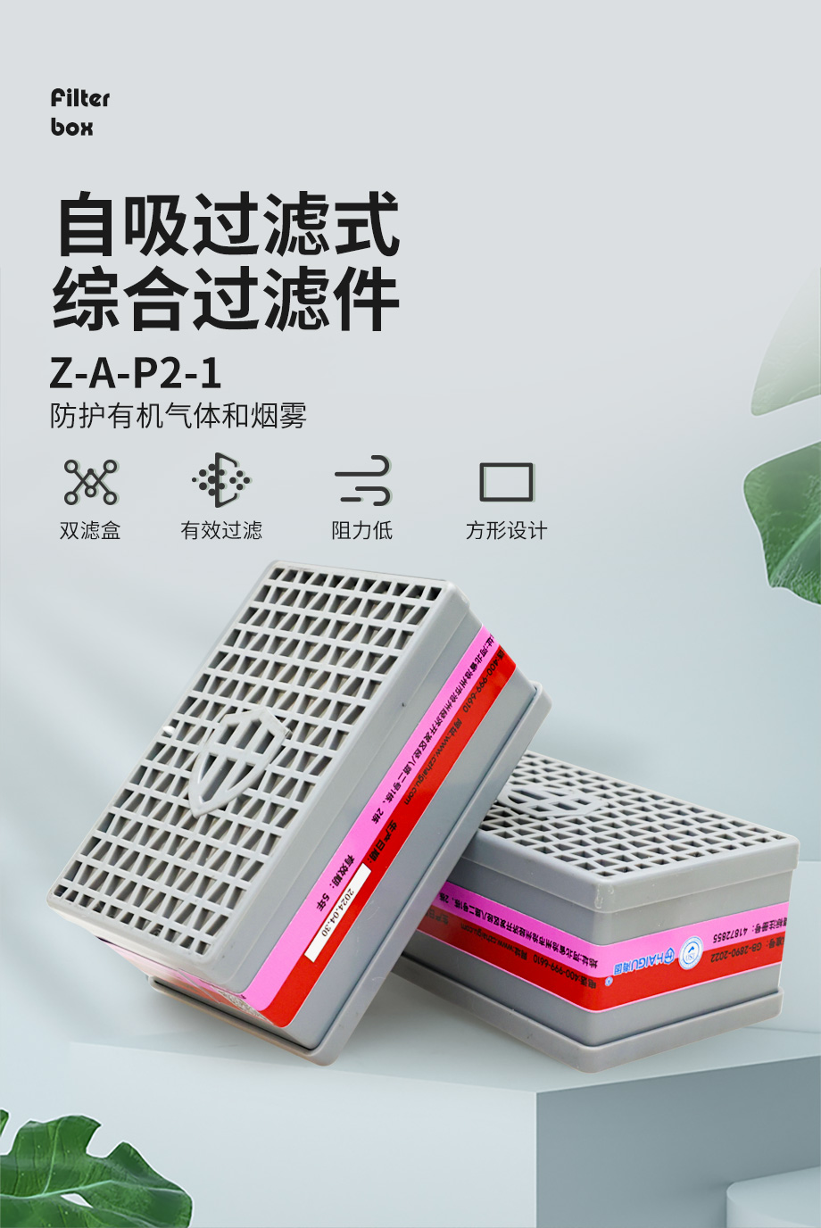 海固方形綜合型濾毒盒 Z-A-P2-1有機氣體及煙霧濾毒盒