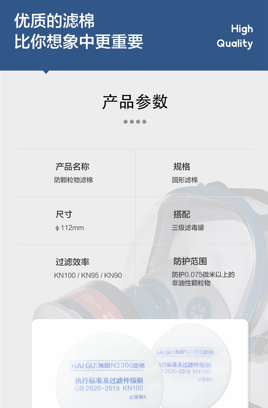 海固2系列3級(jí)KN圓形濾棉 KN100/KN95/KN90非油性顆粒物濾棉