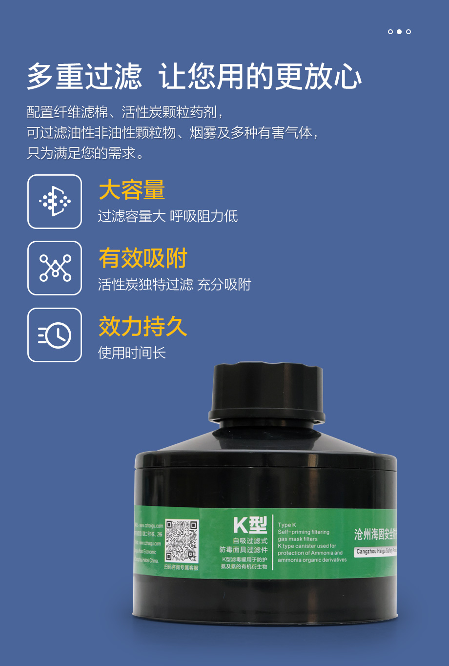 海固700全面罩+HG-ABS/P-K-2濾毒罐 氨氣全面罩防毒面具