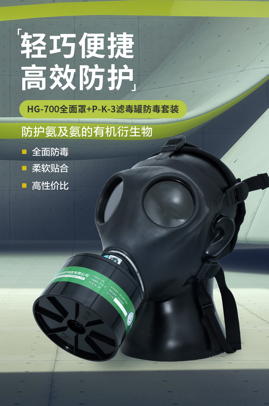 海固700全面罩+P-K-3濾毒罐 氨氣防護