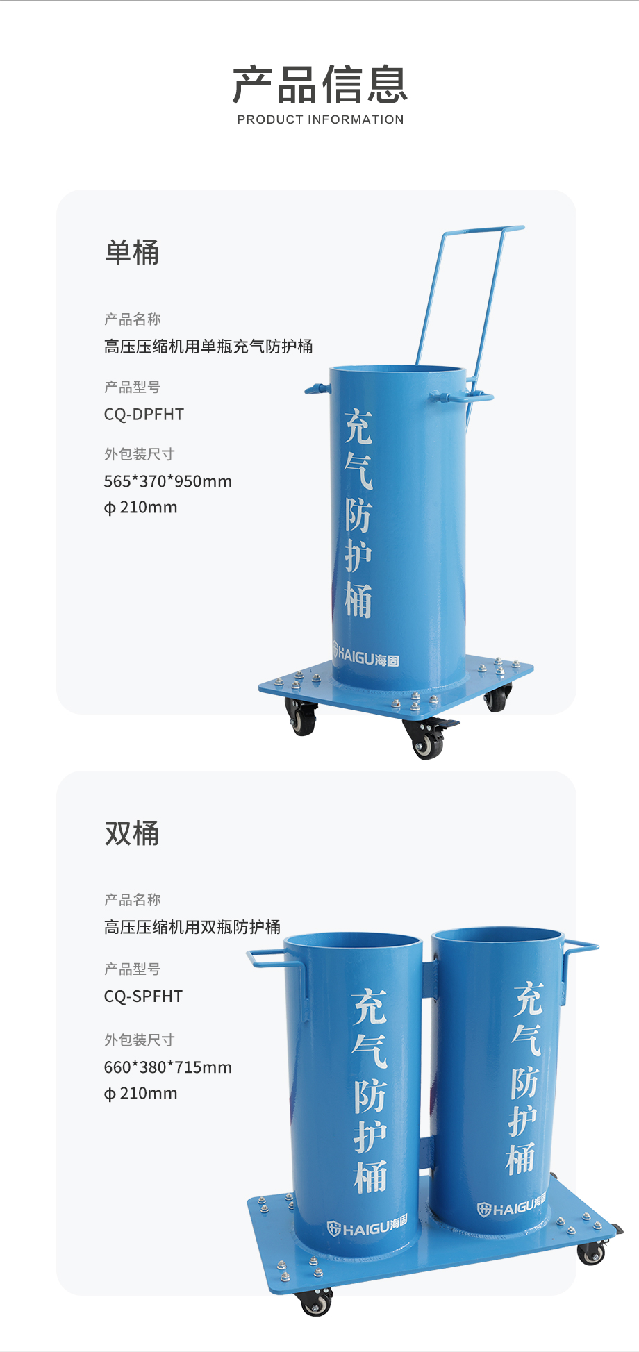 產品名稱:高壓壓縮機用單瓶充氣防護桶