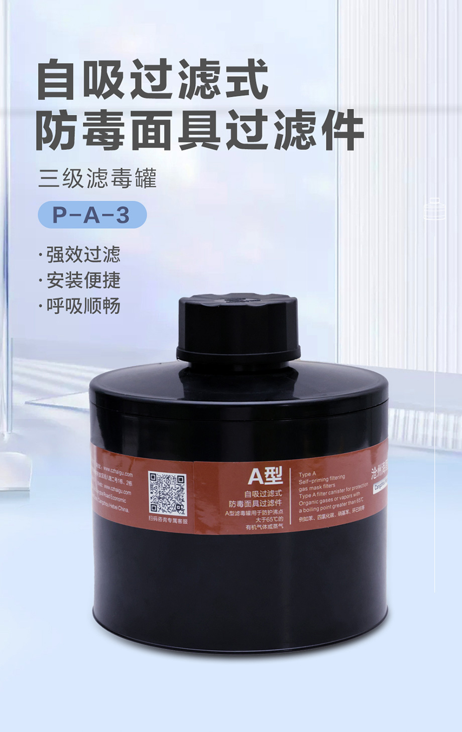 海固P-A-3濾毒罐 有機(jī)氣體苯、四氯化碳、硝基苯、環(huán)己烷等三級(jí)濾毒罐