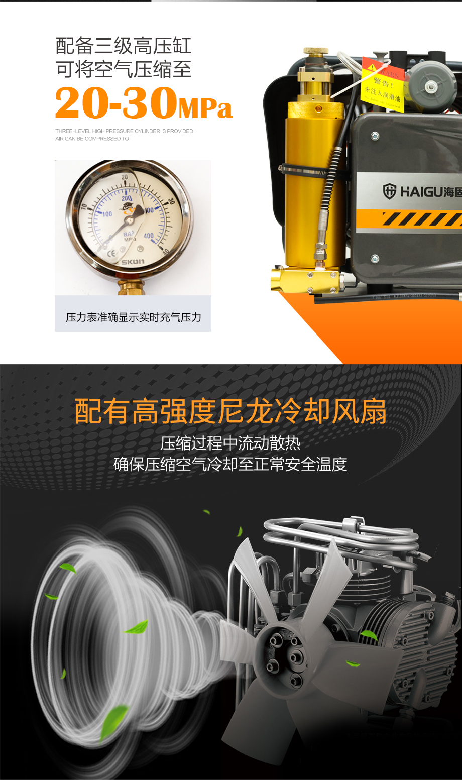海固HG-CQ100D高壓呼吸空氣壓縮機(jī) 正壓式空氣呼吸器充氣泵