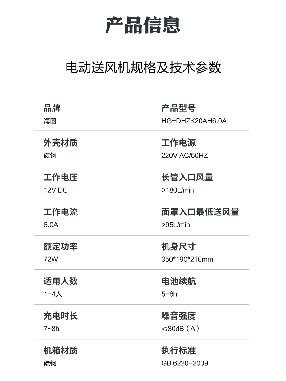 海固HG-DHZK20AH6.0A彩屏智能型 雙人 全面罩 電動送風(fēng)式長管呼吸器