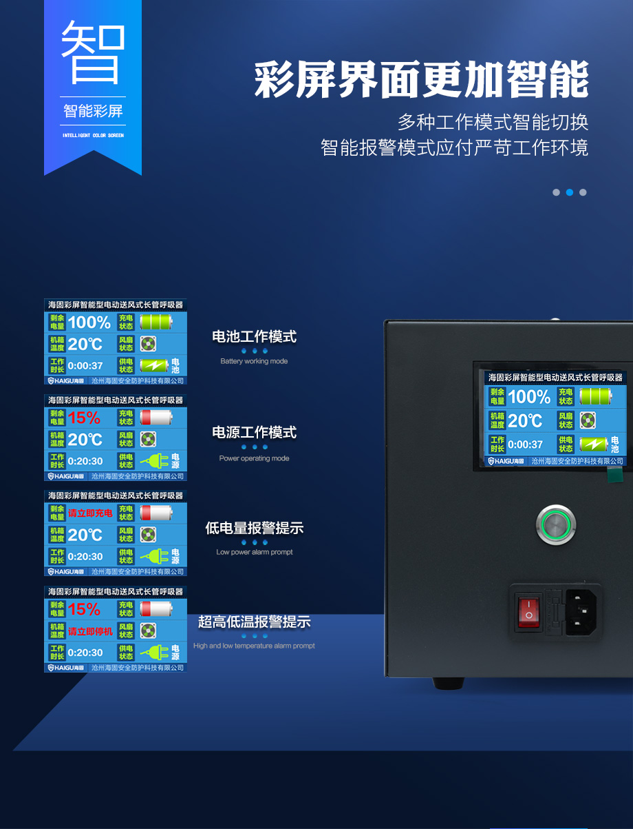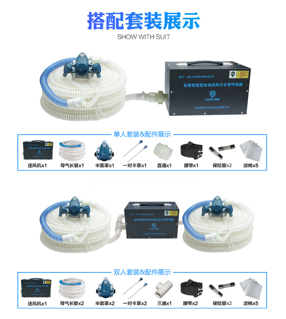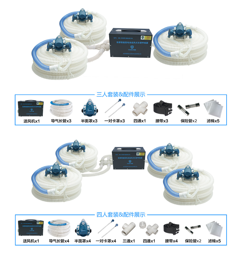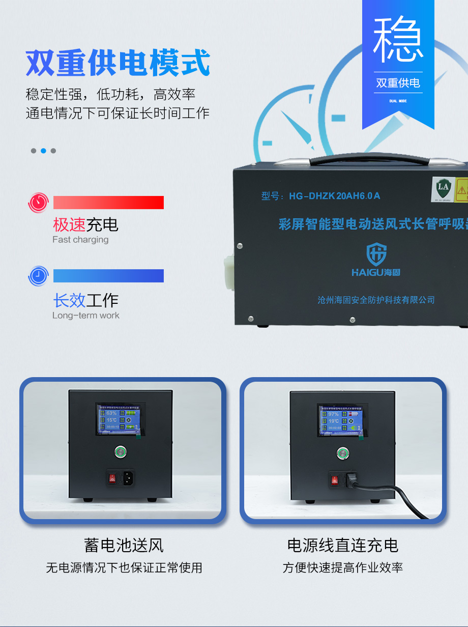 海固HG-DHZK20AH6.0A智能型彩屏 半面罩 單人電動(dòng)送風(fēng)式長(zhǎng)管呼吸器
