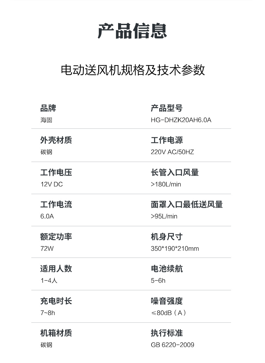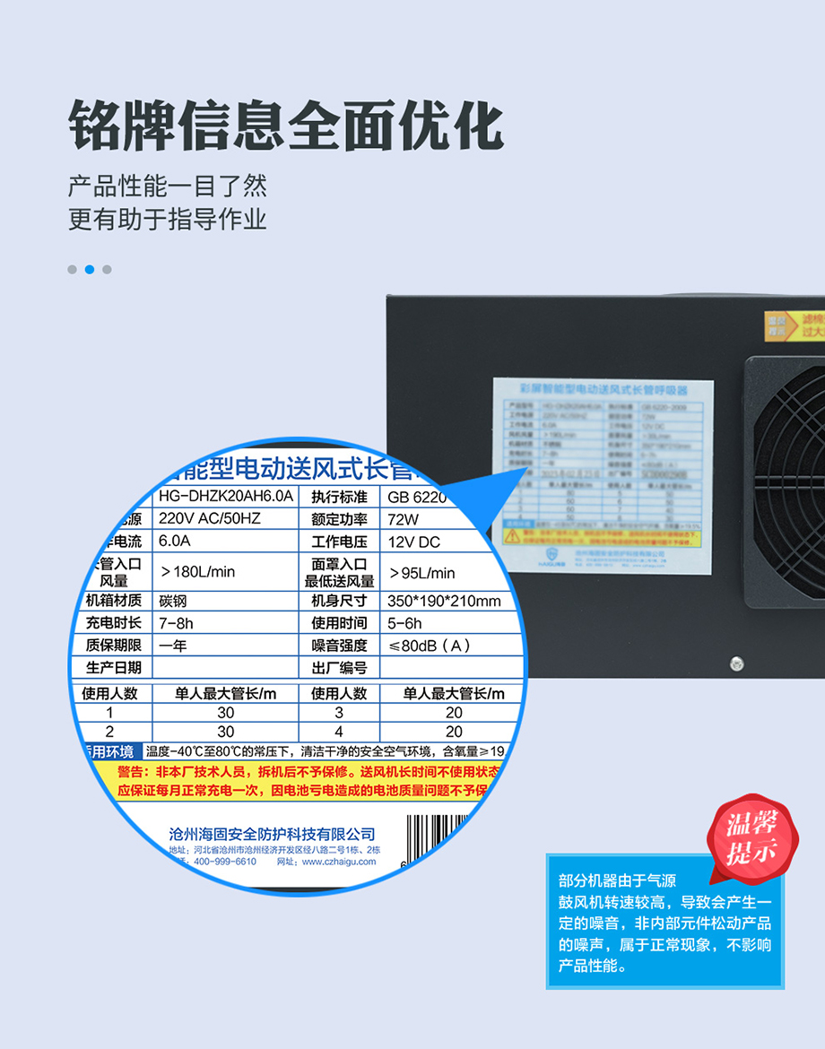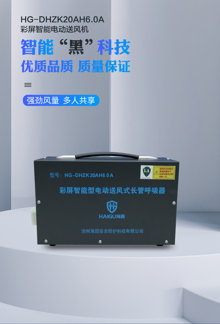 海固HG-DHZK20AH6.0A智能型彩屏 半面罩 單人電動(dòng)送風(fēng)式長(zhǎng)管呼吸器