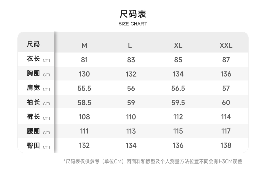 產品規(guī)格:M/L/XL/XXL