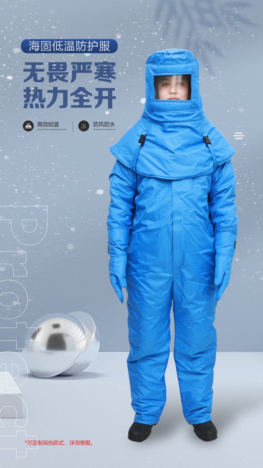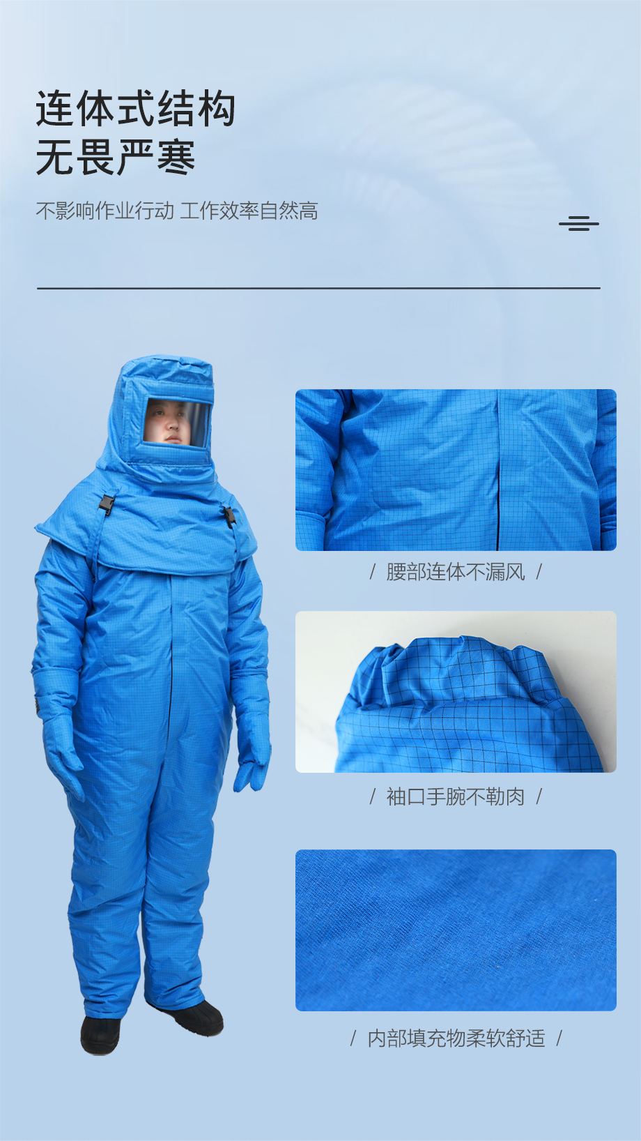 海固低溫防護(hù)服 防液氮飛濺 防靜電 連體帶背囊防護(hù)服