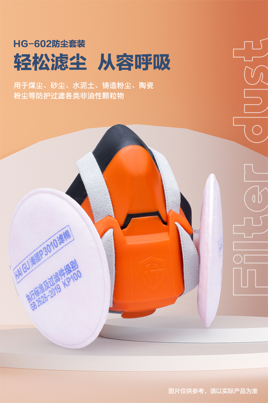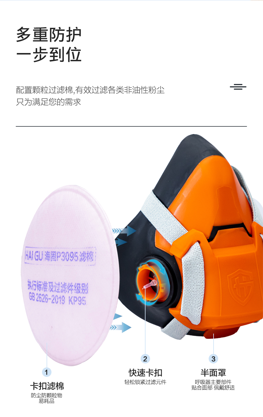海固HG-602半面罩+KP卡扣濾棉 防護(hù)油性非油性顆粒物濾棉