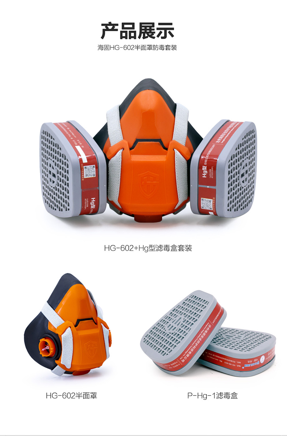 海固602半面罩+P-Hg-1濾毒盒 汞蒸氣防護(hù)套裝