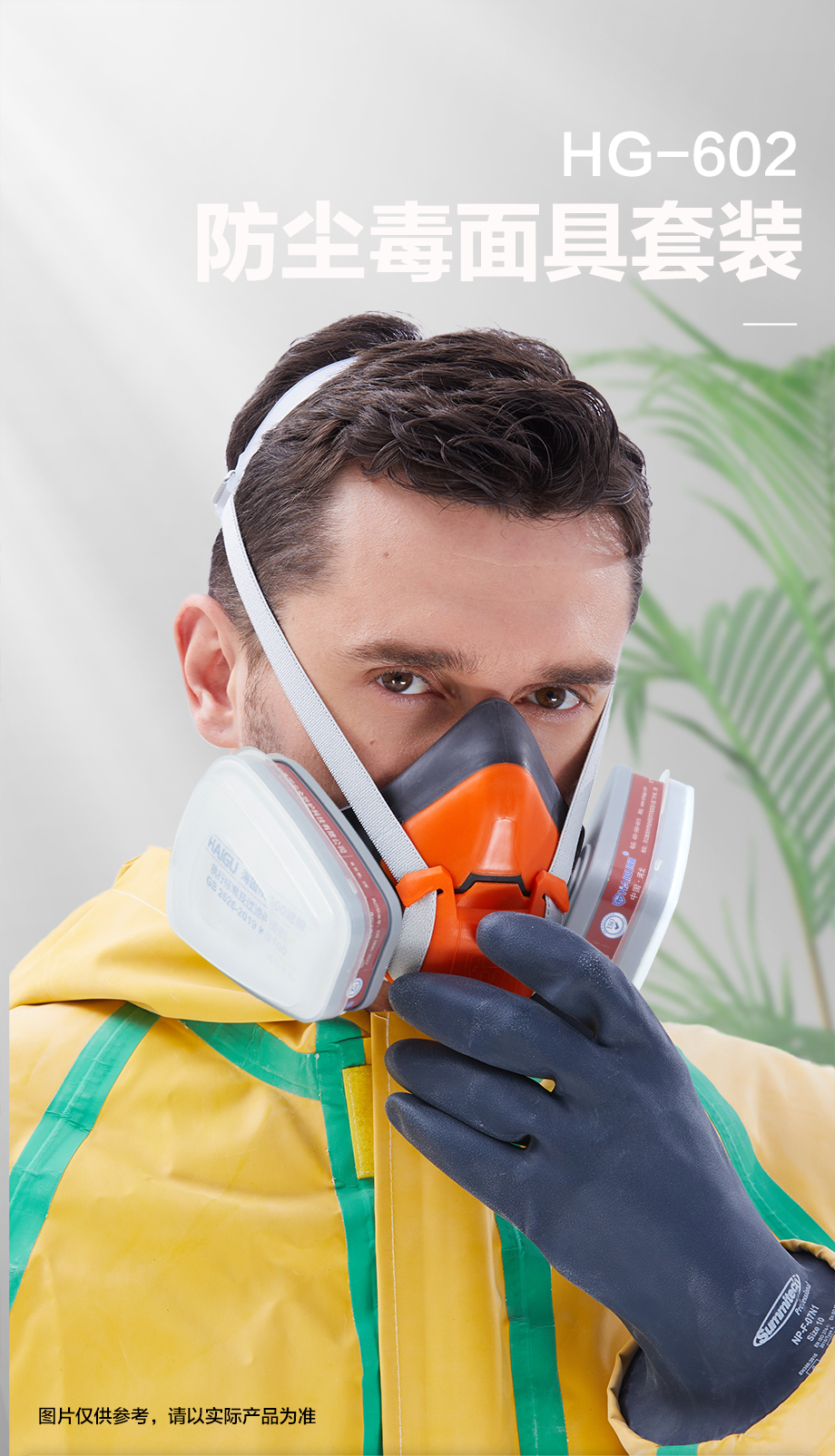 海固HG-602半面罩+P-K-1濾毒盒+濾棉+T型濾棉蓋 防塵毒套裝