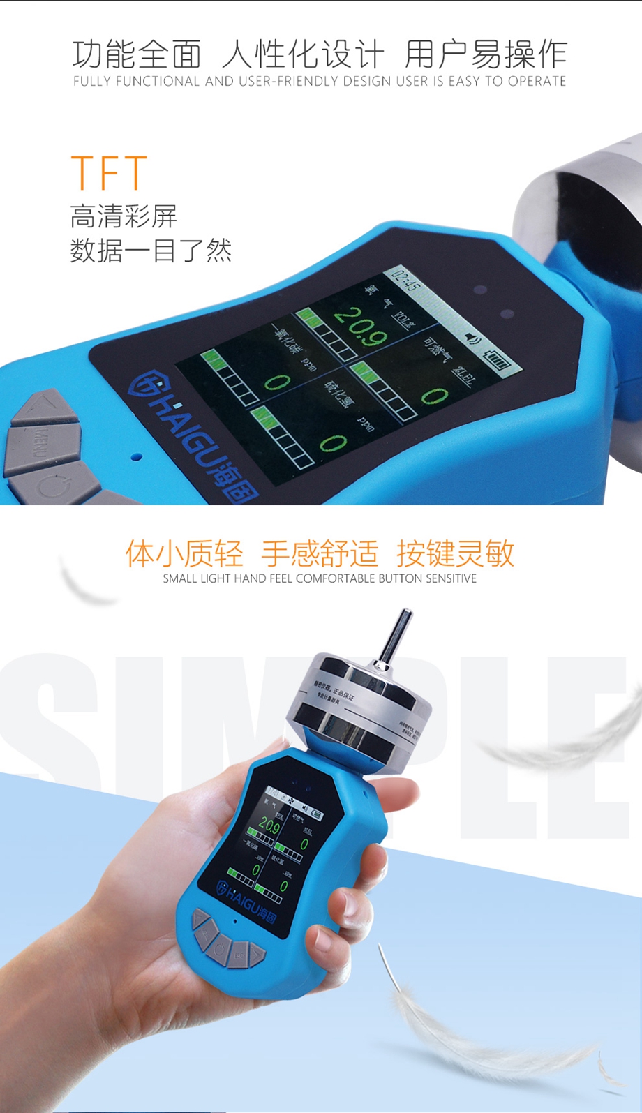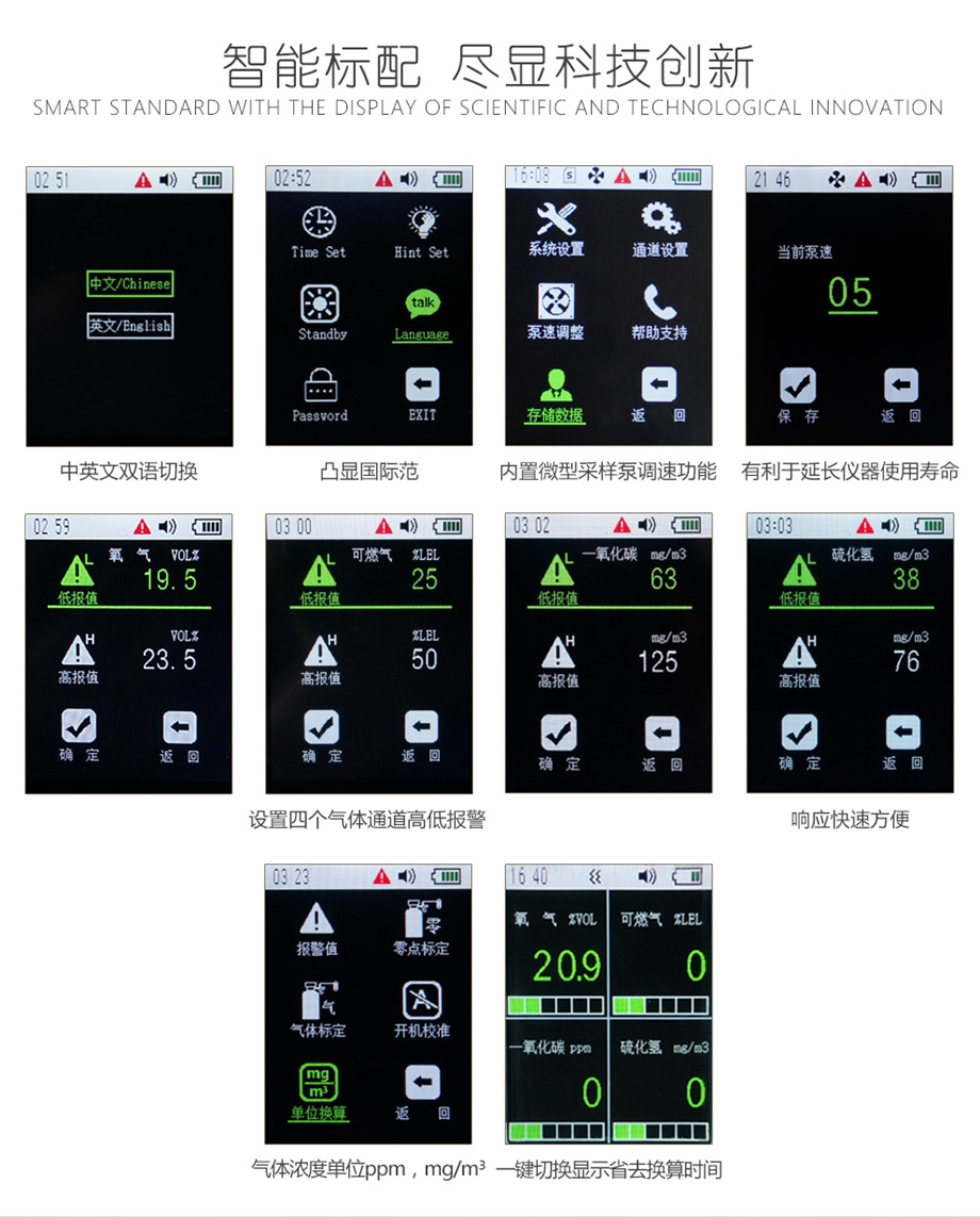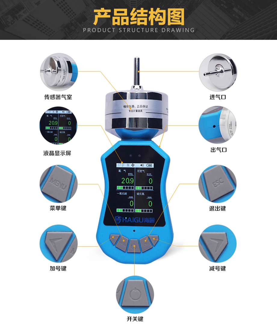 海固HG-BX-F4彩屏泵吸式四合一氣體檢測儀