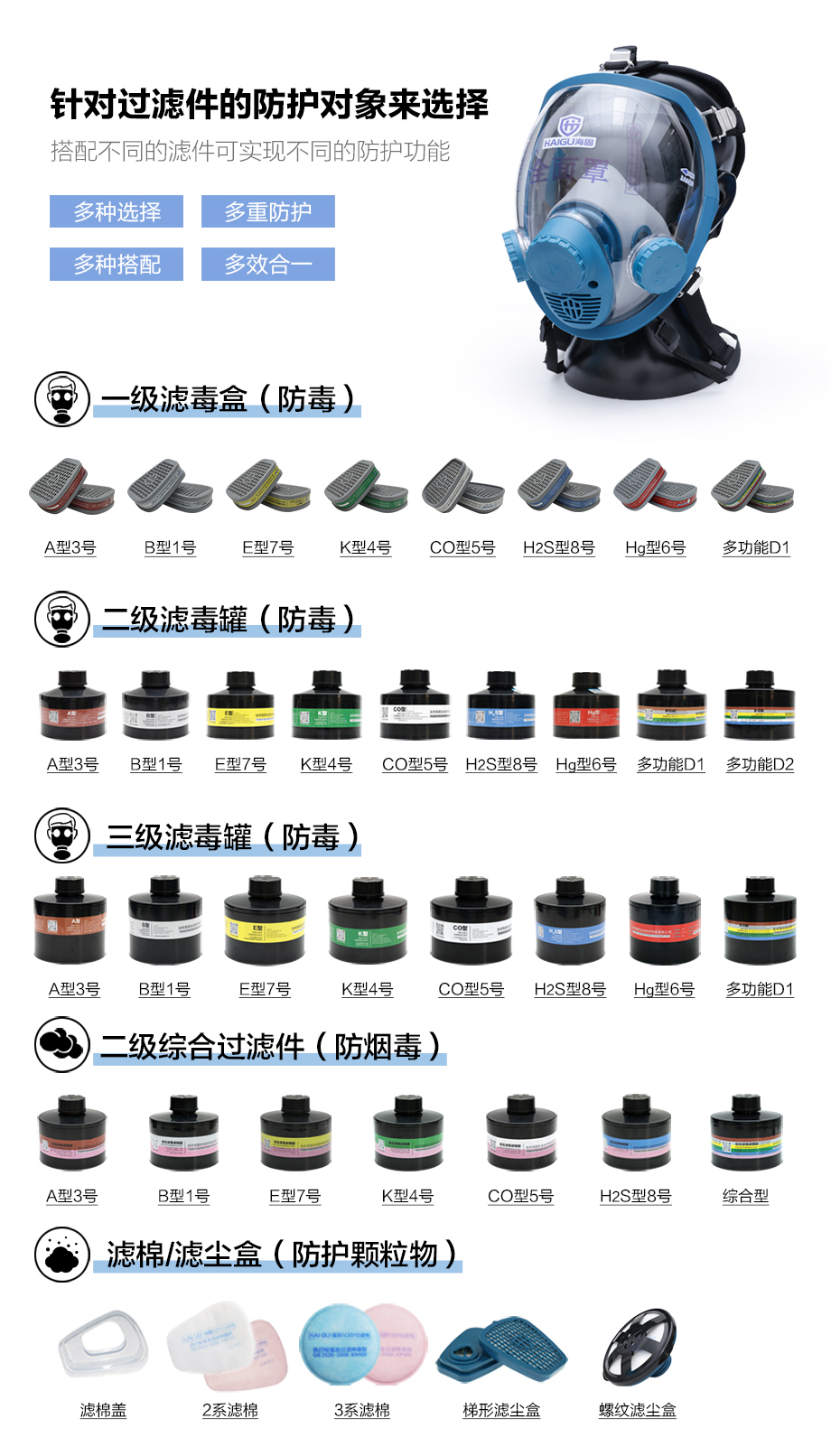 海固800D全面罩+HG-ABS/P-B-3濾毒罐 無(wú)機(jī)氣體綜合防護(hù)套裝