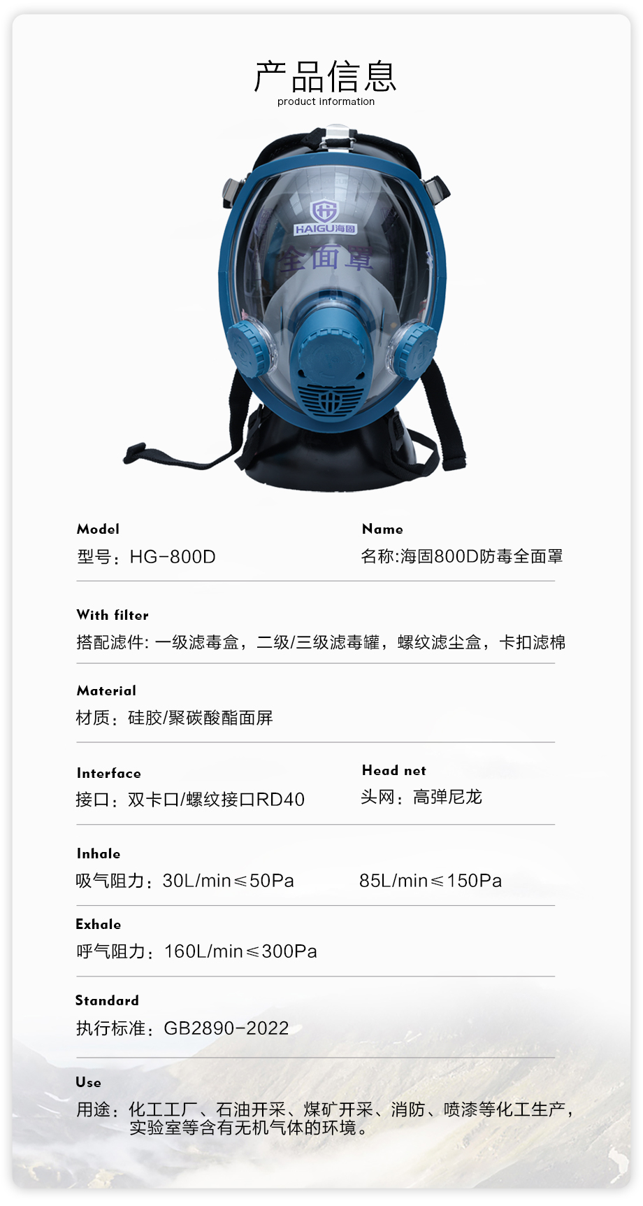 800D全面罩防毒面具