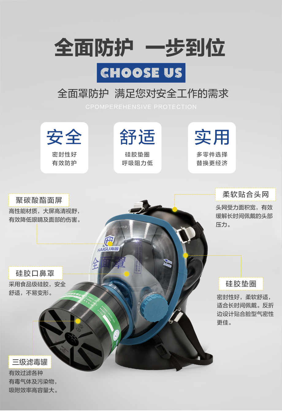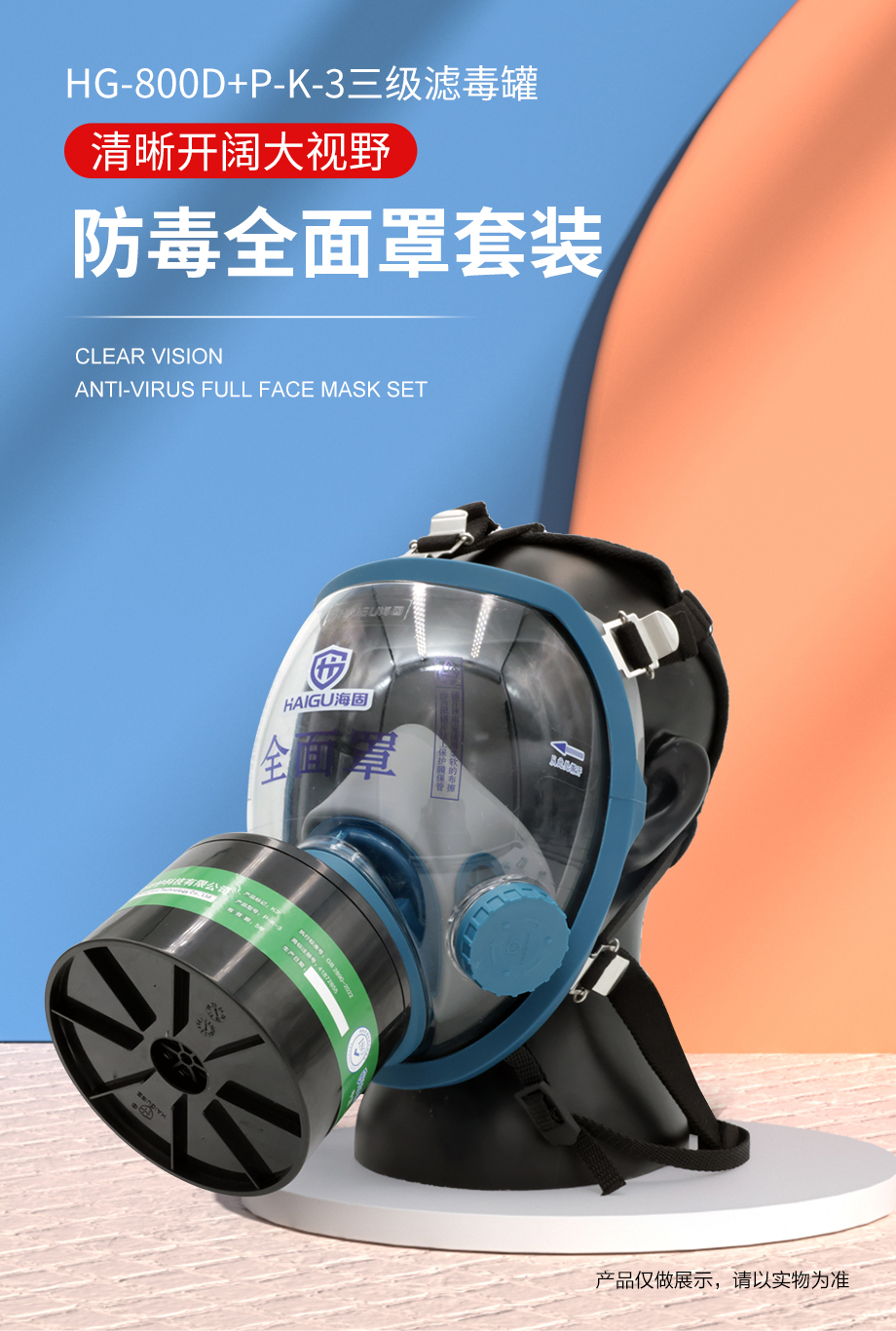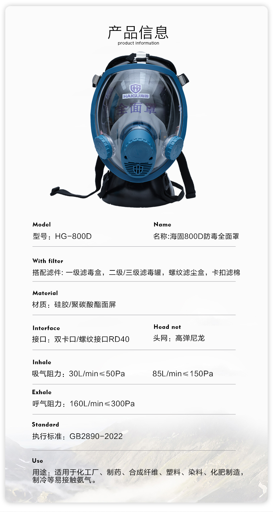 海固800D全面罩+HG-ABS/P-K-3濾毒罐 氨氣防護套裝