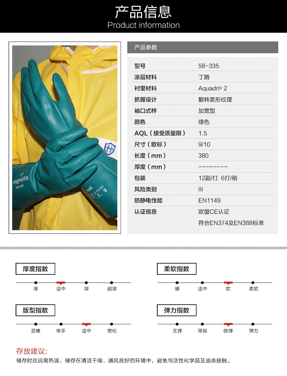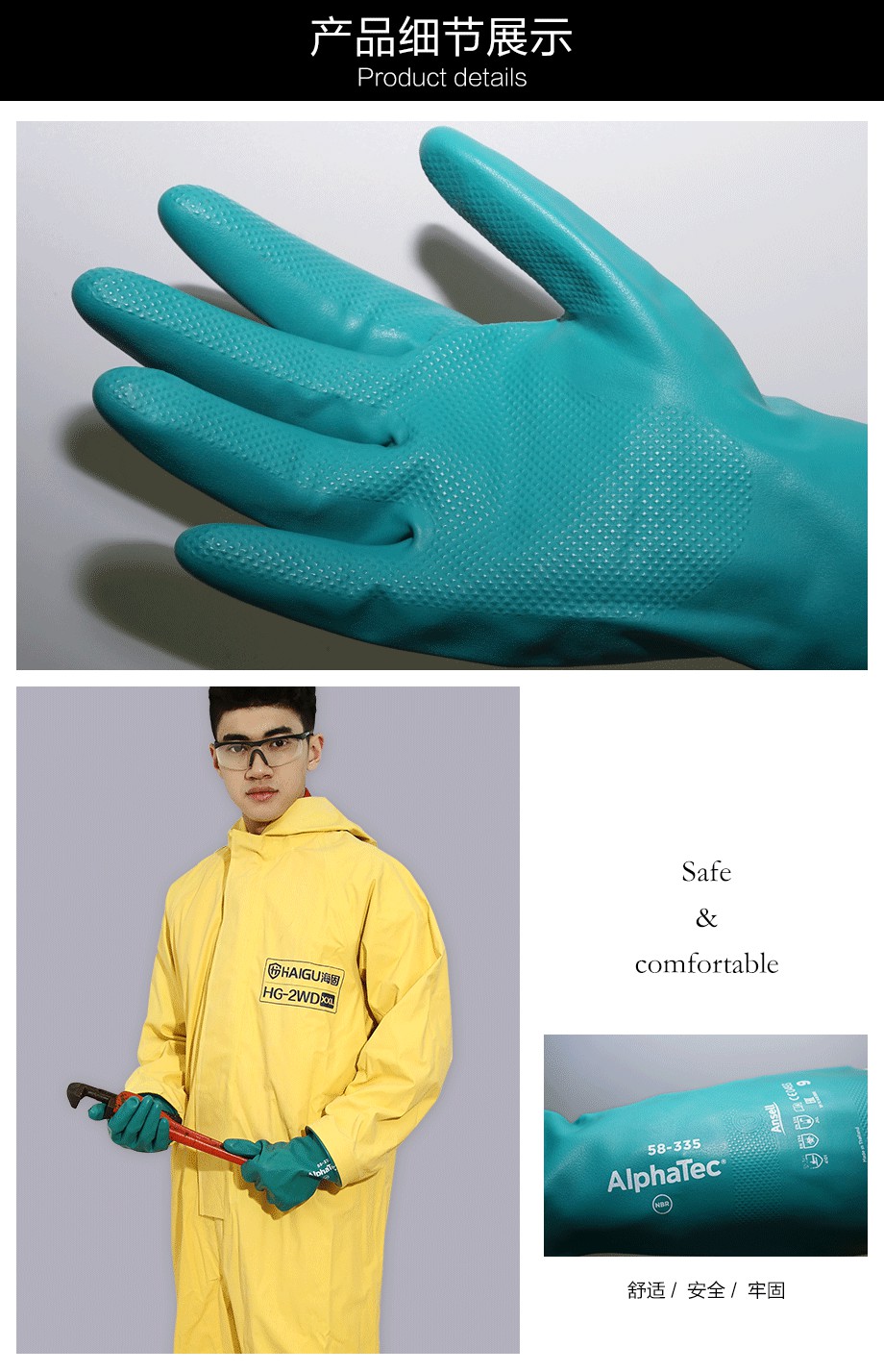 58-335防化丁腈手套 耐磨耐油耐酸堿溶劑手套 酸堿防化服手套
