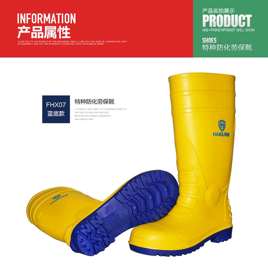 海固HG-FHX07 勞保耐酸堿防化靴、耐酸堿抗腐蝕防化靴