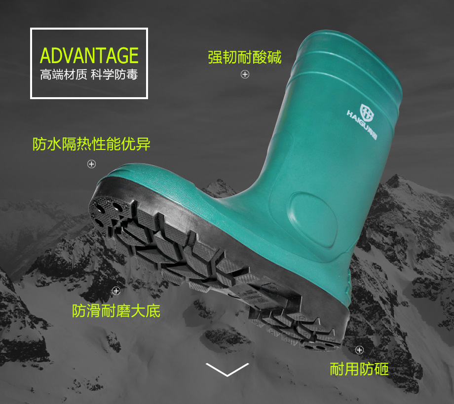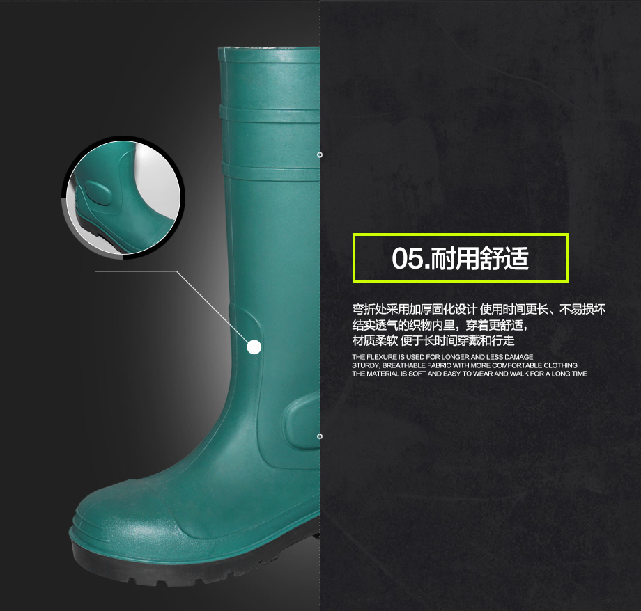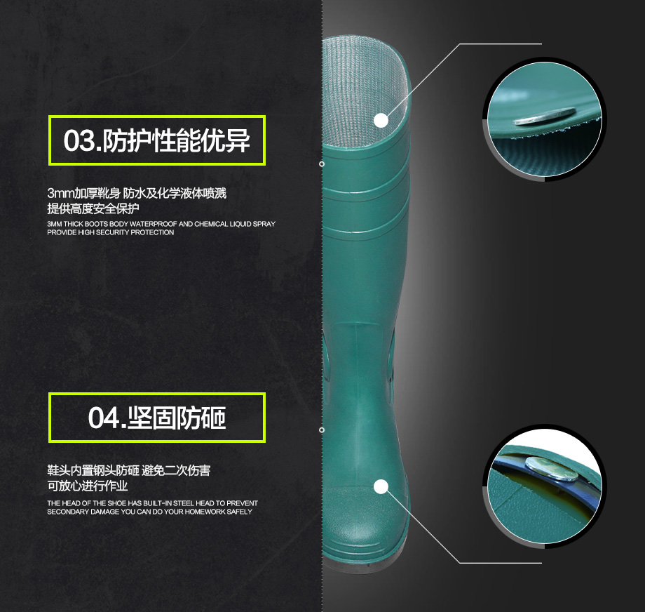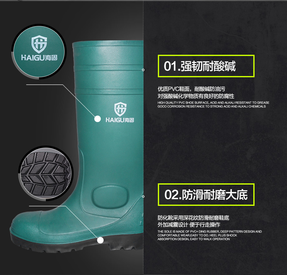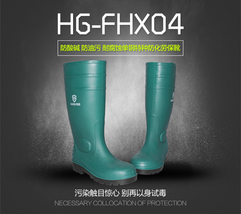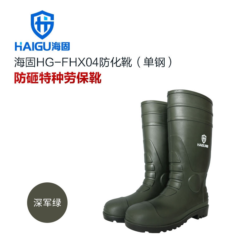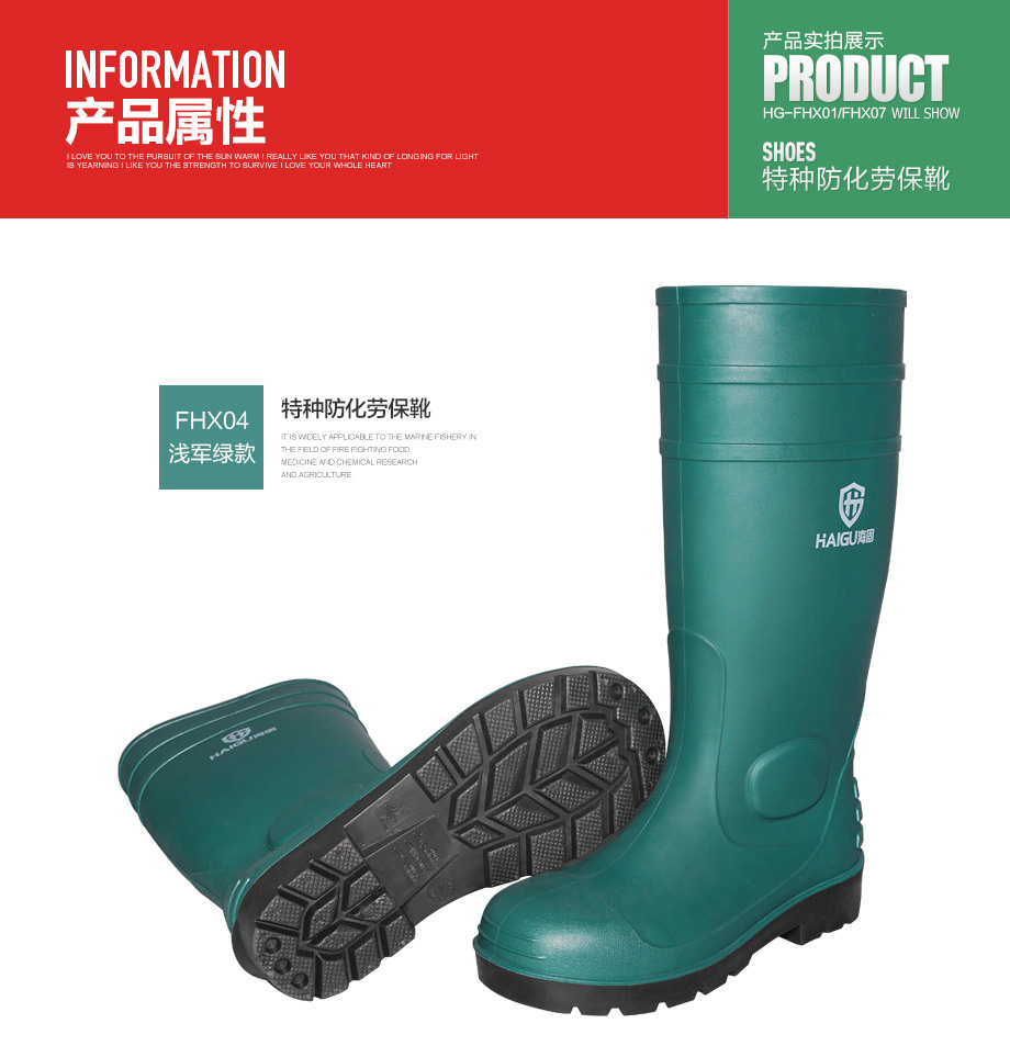 產(chǎn)品名稱:一級靴子-單鋼綠幫黑底防化靴