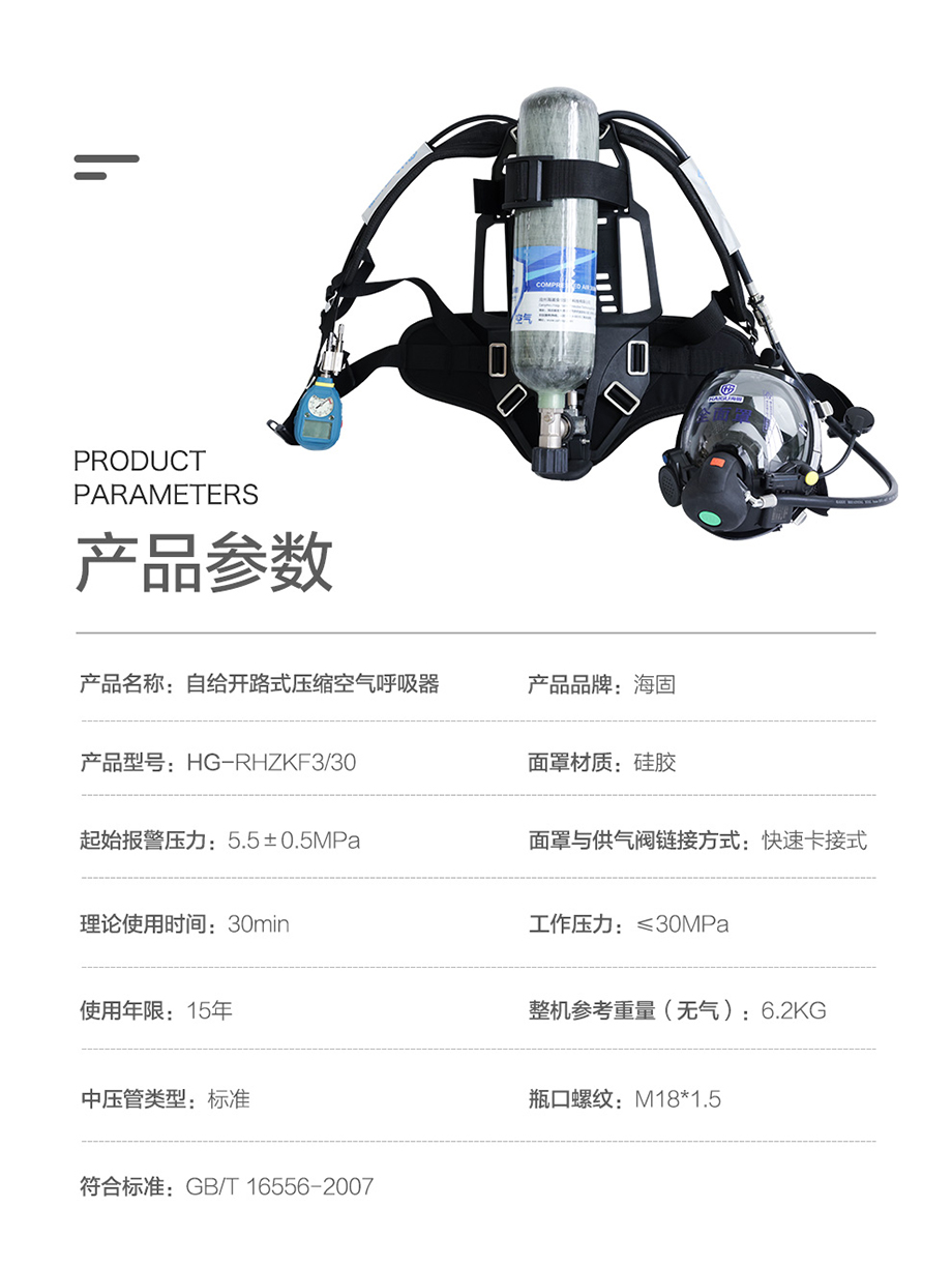 海固RHZKF3/30 正壓式空氣呼吸器 (智能壓力表+壓力平視裝置)
