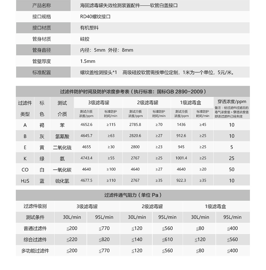 濾毒罐失效檢測裝置配件-軟管白蓋接口