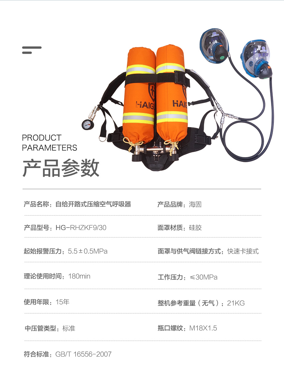 海固RHZKF9/30(雙瓶他救款)正壓式空氣呼吸器 9L雙瓶他救